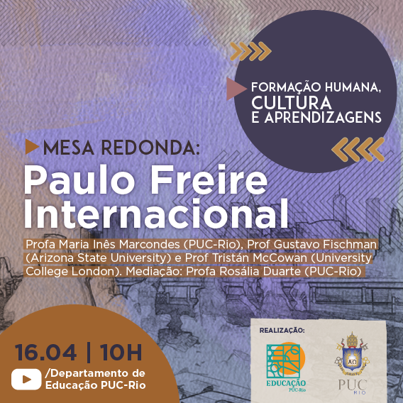 10:00h – Mesa Redonda – Paulo Freire Internacional – Maria Inês Marcondes (PUC-Rio), Gustavo Fischman (Arizona State University) e Tristán MacCowan (Institute of Education, University College London). Baixe aqui o cartaz.