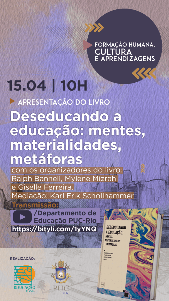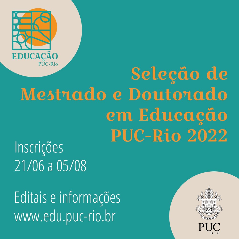 Estão abertas entre hoje (21/06) e 05/08 as inscrições para o Mestrado e o Doutorado do Programa de Pós-Graduação em Educação da PUC-Rio, onde atuo.